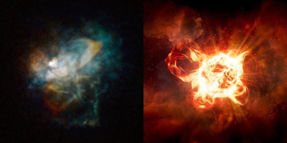 (Image credits: NASA/ESA/R. Humphreys (University of Minnesota); illustration: NASA/ESA/R. Humphreys (University of Minnesota)/J. Olmsted (STScI))