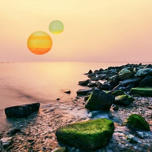 Gli appassionati Sci-Fi ricorderanno bene la fantastica visione di Luke Skywalker mentre contempla il tramonto di due soli sul suo pianeta di origine, Tatooine: non dissimile dalla stupenda immagine che qui alleghiamo, ripresa dalla nostra fotografa Gigliola Antonazzi durante un tramonto del nostro Sole, reso "doppio", la visione col doppio-Sole di Tatooine ha fatto breccia nel cuore di molti appassionati, portando a chiedersi se un simile scenario possa effettivamente esistere.