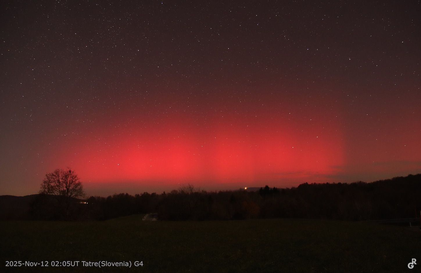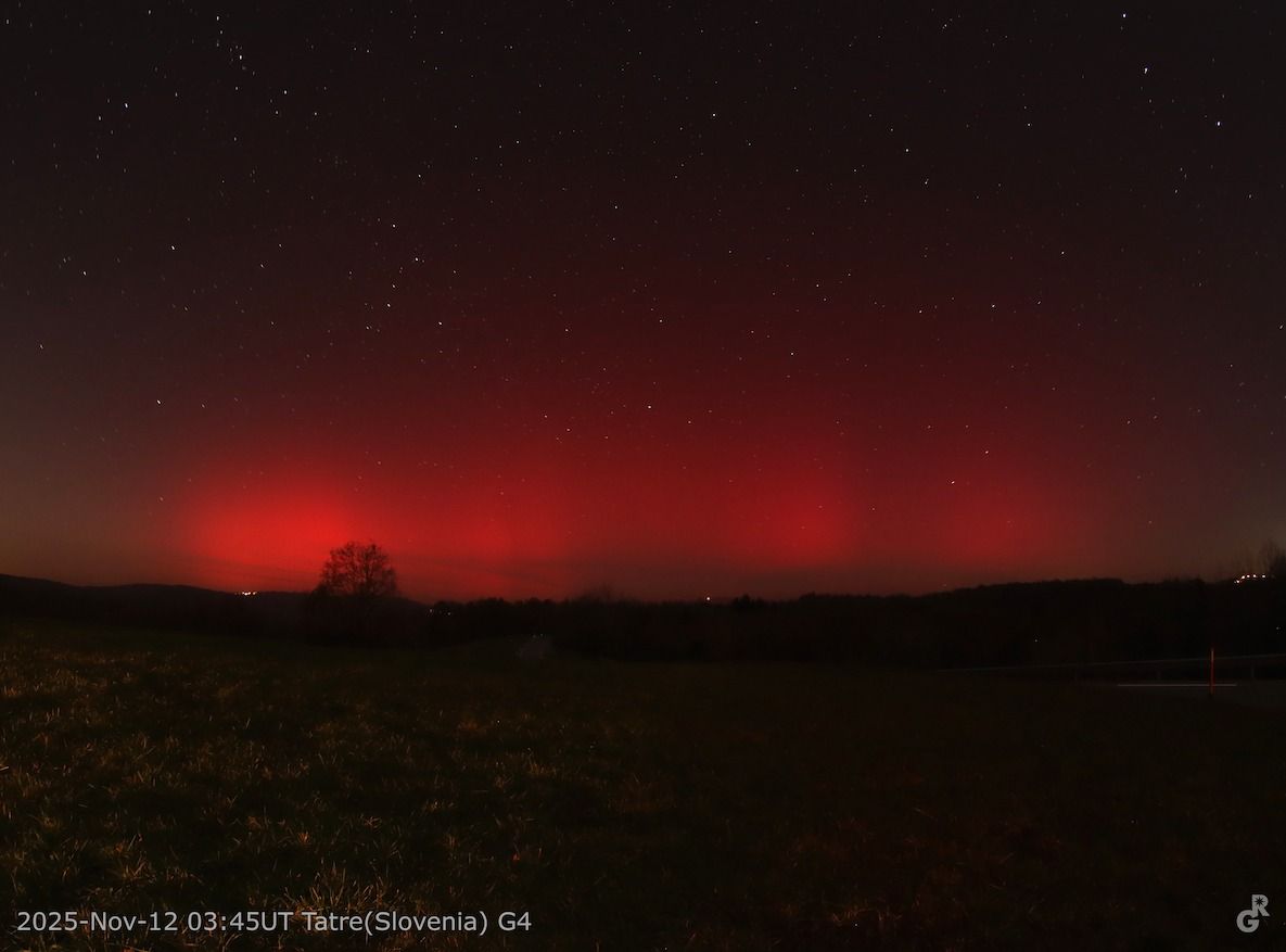 SOLE - AURORA BOREALE E SAR NEL CIELO A NORD LA NOTTE SCORSA: osservata e fotografata in Slovenia a 10Km da Trieste (ma anche da molti altri in Italia e nel mondo), abbastanza intensa da non essere disturbata dal notevole chiaro della Luna con fase al 50%! L'intensità del picco di tempesta geomagnetica avvenuto è G4. L'evento è paragonabile a quello di Ottobre 2024. Si prevede una G4 anche stanotte.