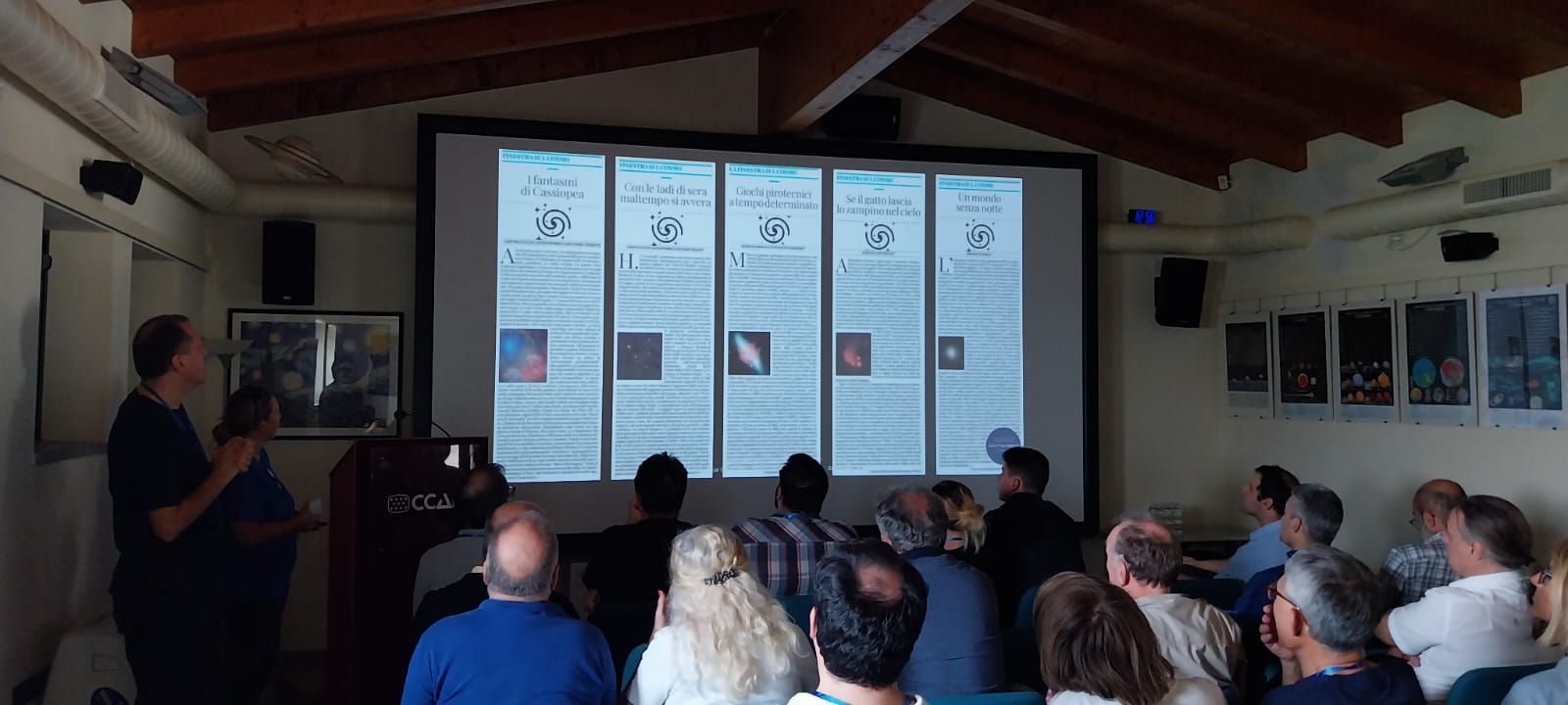 Come sempre, tanti e vari gli argomenti di discussione: dai pianeti giganti a quelli ipotetici (Stefano Schirinzi e Roberto Furlan, CSAAT), proseguendo poi con la meccanica quantistica col Dott. Murante (Osservatorio Astronomico di Trieste - INAF) e la presentazione del bellissimo volume "Guida turistica dell'Universo" da parte del Prof. Emilano Ricci (Università di Firenze).