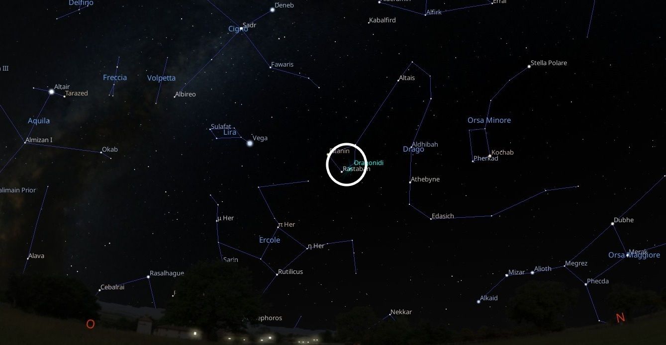 Nonostante quest’anno il picco delle Draconidi sia previsto attorno alle ore 21 locali, esso coincide con una fase di Luna piena, rendendo non facile l’osservazione visuale.