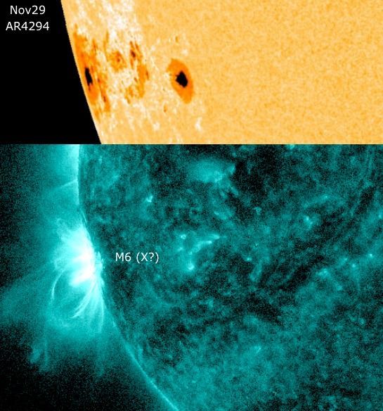 E' interessante che la regione sorta oggi, 4294, si trovi invece nell'emisfero Sud. Potrebbe quindi trattarsi dell'inizio di un periodo di attività notevole in entrambi gli emisferi. Dopotutto siamo ancora negli anni centrali del ciclo undecennale.