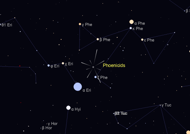 SCIAMI DI METEORE - FENICIDI (254 PHO): iniziano a rendersi visibili dal 28 novembre fino al 9 di dicembre, raggiungendo il massimo nella notte del 1° dicembre.