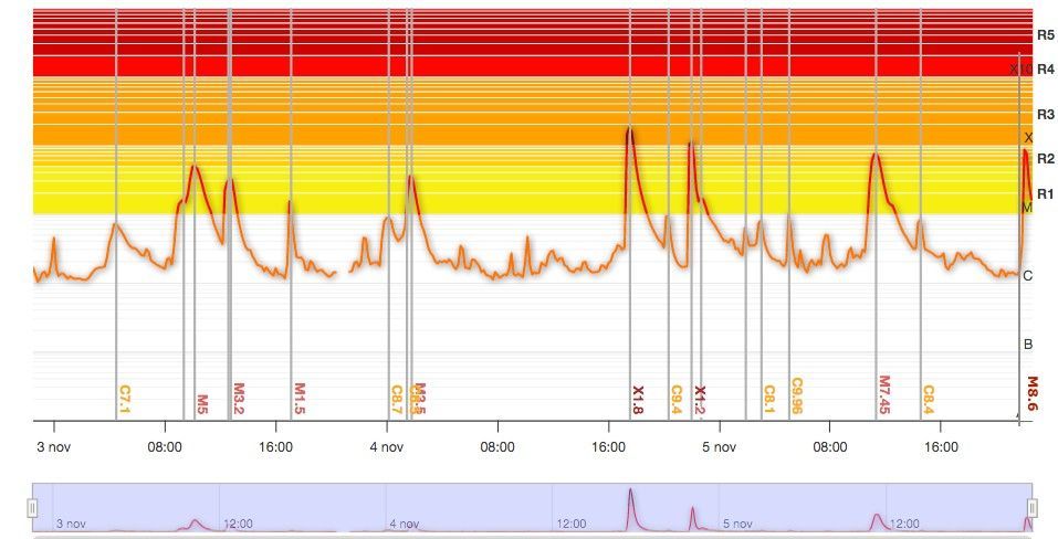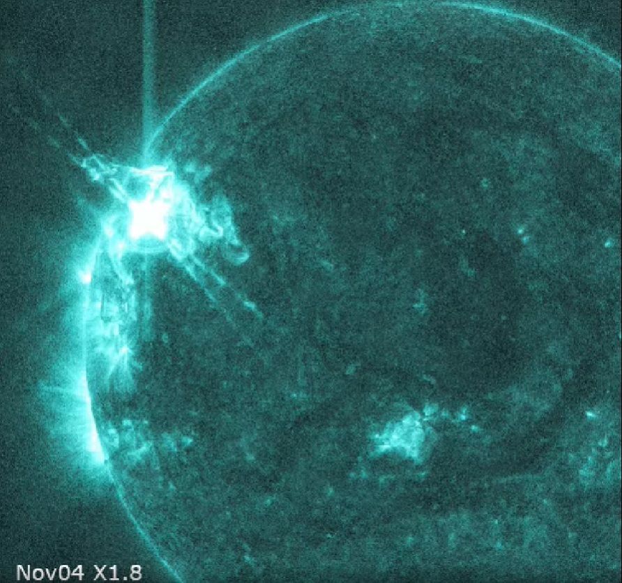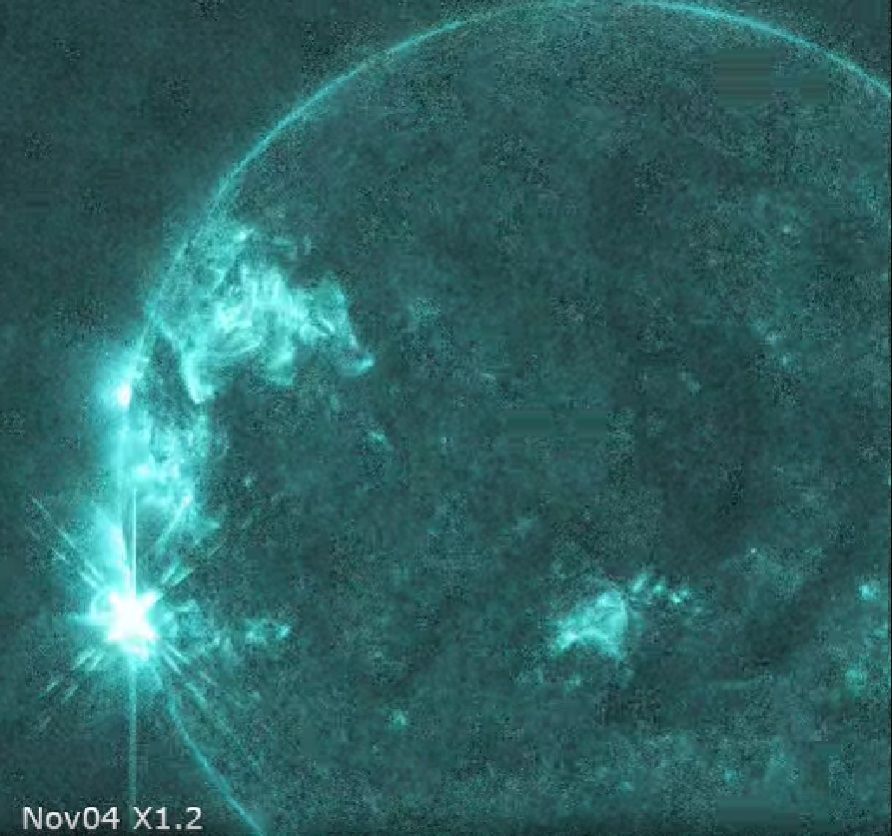 Un Novembre attivo. La regione attiva (gruppo di macchie solari) 4274 nell'emisfero Nord continua a dare spettacolo. Quello di oggi è il suo quinto brillamento di classe X (la più intensa).