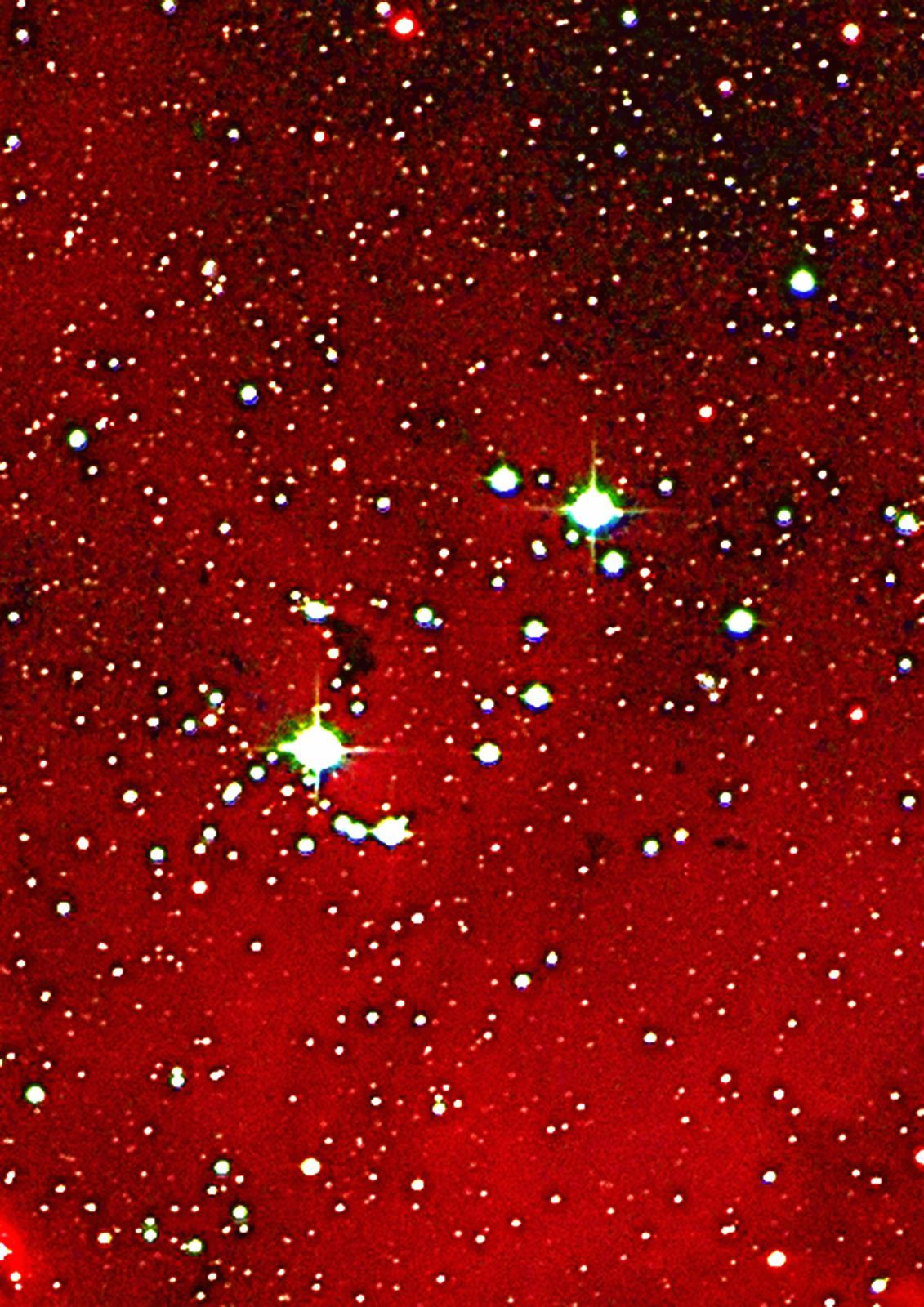 NEBULOSA DI λ CENTAURI: questa ripresa dell'area centrale della vasta nebulosa IC2944 in Centaurus, lontana circa 6.000 anni-luce dal Sistema Solare, rivela un'incubatrice stellare di straordinaria complessità. Il bagliore diffuso e le delicate sfumature cremisi che pervadono il campo visivo sono il risultato dell'idrogeno ionizzato, eccitato dalla radiazione ultravioletta delle stelle massicce e caldissime appartenenti all'ammasso aperto Collinder249, situato all'interno, che dominano la scena con la loro luce azzurrina. Queste giganti, principalmente di tipo spettrale O, sono veri "mostri" cosmici, con temperature superiori ai 30.000 K che emettono una quantità incredibile di radiazione ultravioletta la quale agisce come una sorta di scalpello naturale sulla materia circostante attraverso fotoevaporazione.