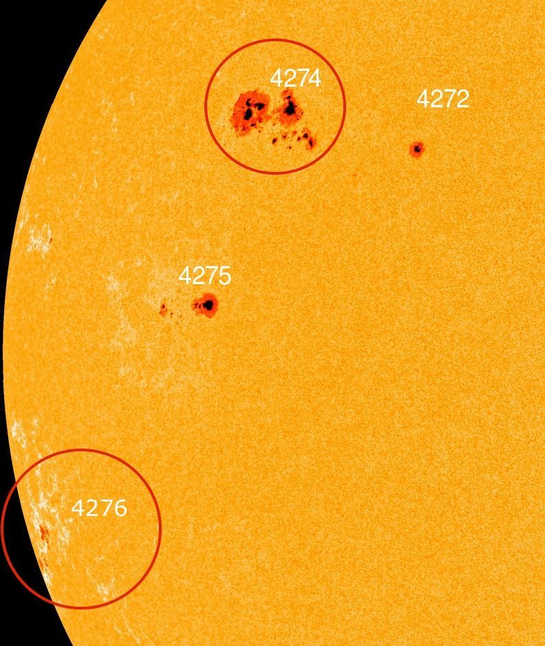 E' interessante che la regione sorta oggi, 4294, si trovi invece nell'emisfero Sud. Potrebbe quindi trattarsi dell'inizio di un periodo di attività notevole in entrambi gli emisferi. Dopotutto siamo ancora negli anni centrali del ciclo undecennale.