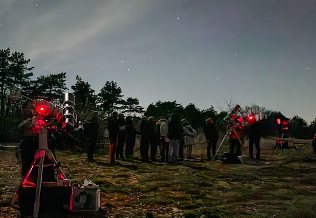 CORSO DI INTRODUZIONE ALL'ASTRONOMIA 2025: con un seguito di numerosi corsisti a sfidare il freddo secco, la seconda uscita pratica è stata dedicata all'osservazione della volta celeste ad occhio nudo, binocolo e telescopio, di oggetti visibili anche con il chiaro di Luna. La serata ha avuto condizioni eccezionali: seeing alto (bassa turbolenza) perfetto per l'osservazione di fini dettagli di Luna e pianeti, e contemporaneamente una discreta nitidezza adatta all'osservazione delle stelle.
