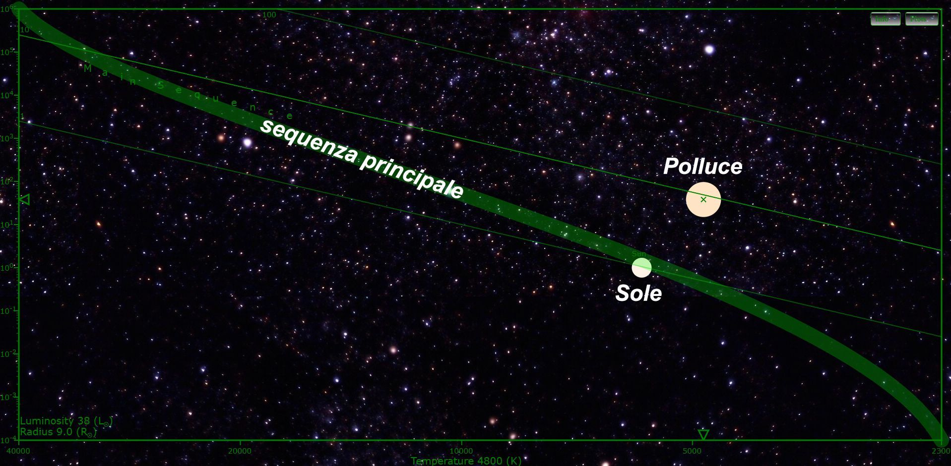 E se volessimo immaginare dove orbita Pollux IV, il pianeta di fantasia presente nella serie televisiva? Tale corpo celeste viene mostrato come simile alla Terra, dunque, per poter essere un analogo terrestre dovrebbe trovarsi a orbitare a circa 6,06 AU da Pollux, all’interno della fascia di abitabilità della stella (5,6 AU - 10,48 AU).