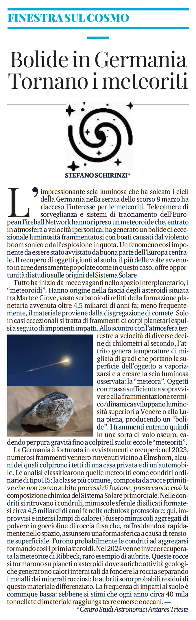 FINESTRA SUL COSMO: nell'odierno numero della rubrica pubblicata sullo storico quotidiano Il Piccolo, Andrea Nichele e Stefano Schirinzi (Centro Studi Astronomici Antares di Trieste) esplorano il paradosso di NGC2648: Pur essendo ricca di gas, questa struttura rimane inerme, incapace di generare nuove stelle forse a causa di perturbazioni gravitazionali indotte da una piccola galassia vicina. Un caso di studio affascinante sulle dinamiche evolutive che possono spegnere la vitalità di un intero sistema cosmico.