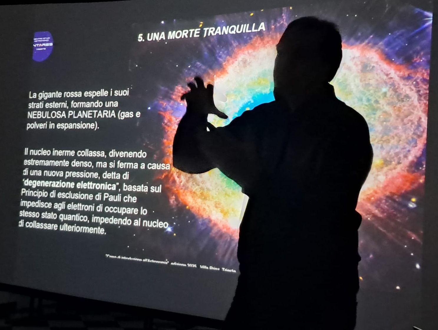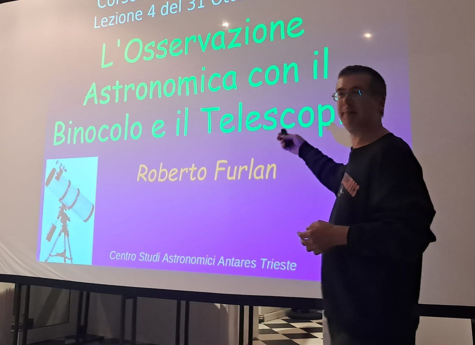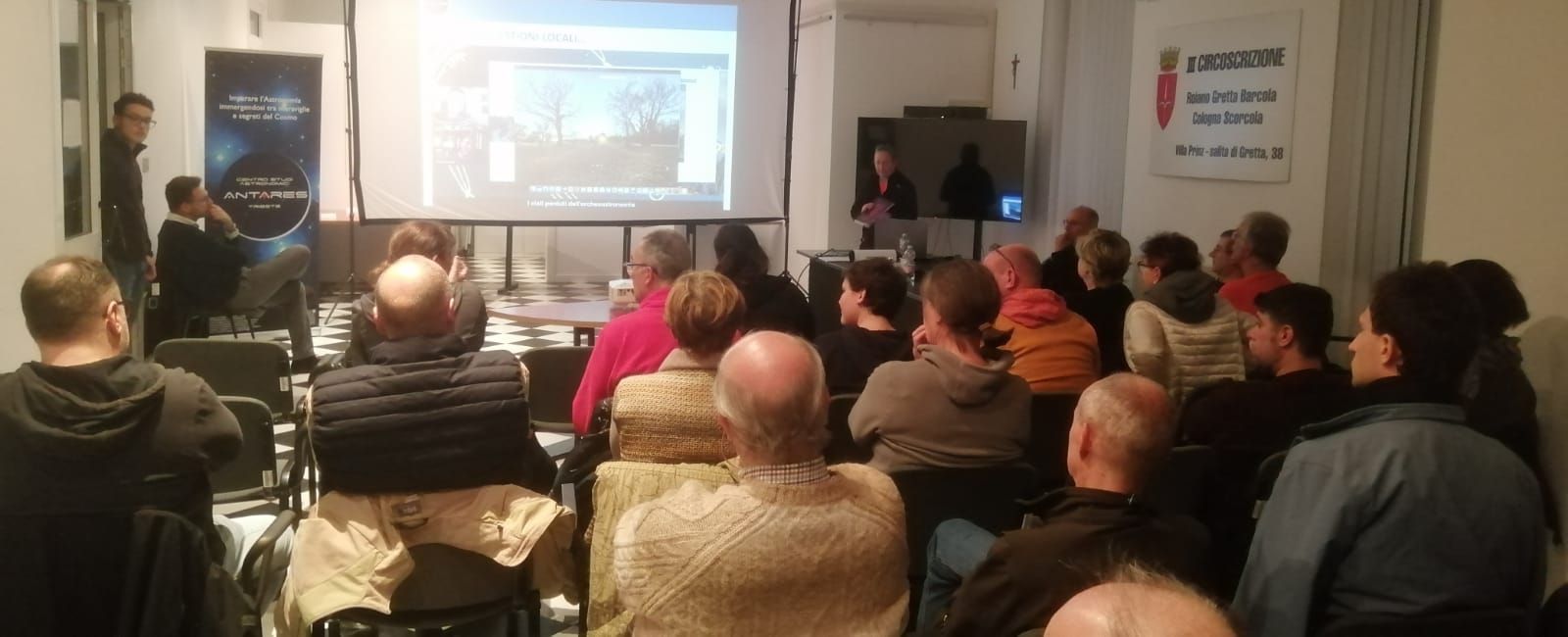 Serata con grande affluenza di studenti universitari nella conferenza "CURIOSITA' ASTRONOMICHE - VIAGGIO ALLA SCOPERTA DELL'UNIVERSO" tenuta presso Opera figli del Popolo a Trieste da Stefano Schirinzi, Presidente del Centro Studi Astronomici Antares Trieste. Le numerose le domande e interventi lanciati dai partecipanti hanno reso davvero emozionante l'intero evento.