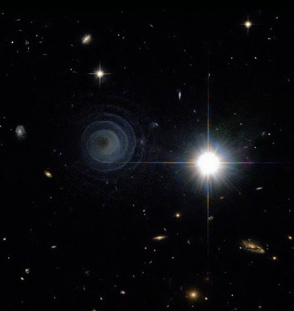 Ma andiamo per ordine; nel 2006 venne individuata in Pegasus una sorgente infrarossa la quale non evidenziava, nelle riprese effettuate con i telescopi, alcuna controparte ottica. Il rebus venne risolto nel giro di qualche tempo grazie al telescopio spaziale Hubble: grazie all’utilizzo di particolare camera ultra-sensibile su di esso installata, nella posizione della sorgente infrarossa venne rilevata una debole struttura a spirale vista esattamente di fronte, non dissimile da una galassia di tale forma ma senza le caratteristiche strutture di questi oggetti: una struttura che, potremmo dire, apparve come un fantasma dalle tenebre!