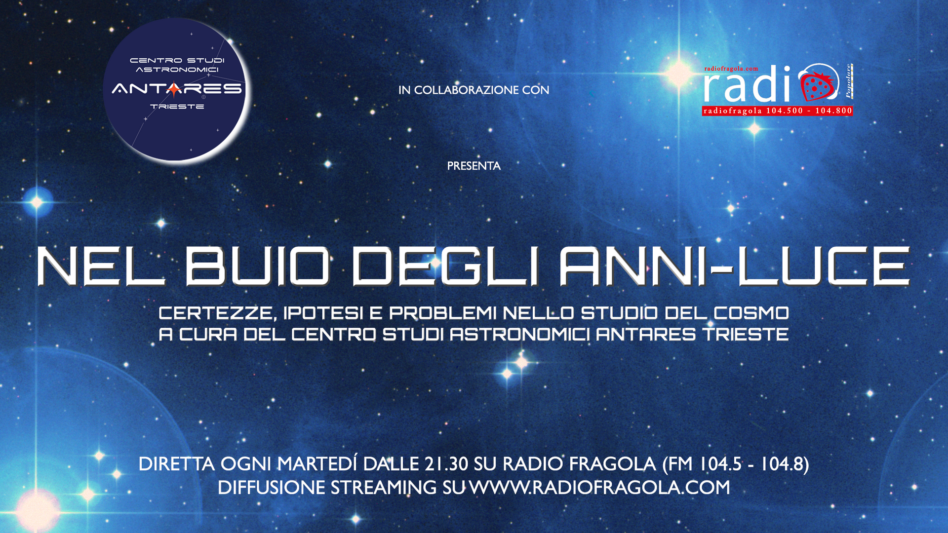 𝘿𝙞𝙖𝙢𝙤 𝙡𝙪𝙘𝙚 𝙖𝙡𝙡'𝙞𝙜𝙣𝙤𝙩𝙤; 𝙙𝙞𝙖𝙢𝙤 𝙫𝙤𝙘𝙚 𝙖𝙡 𝘾𝙤𝙨𝙢𝙤: non perdete la puntata inaugurale di "NEL BUIO DEGLI ANNI LUCE - CERTEZZE, IPOTESI E PROBLEMI NELLO STUDIO DEL COSMO", in partenza MARTEDÌ 14 OTTOBRE, ore 21.30, su Radio Fragola.